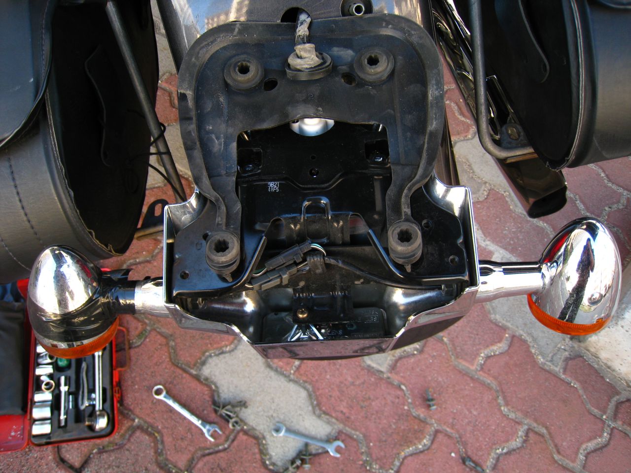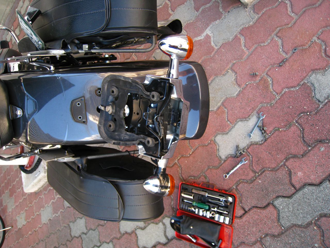 サイドボックスがついてないのは、土曜日に車体色に塗装してもらうためです